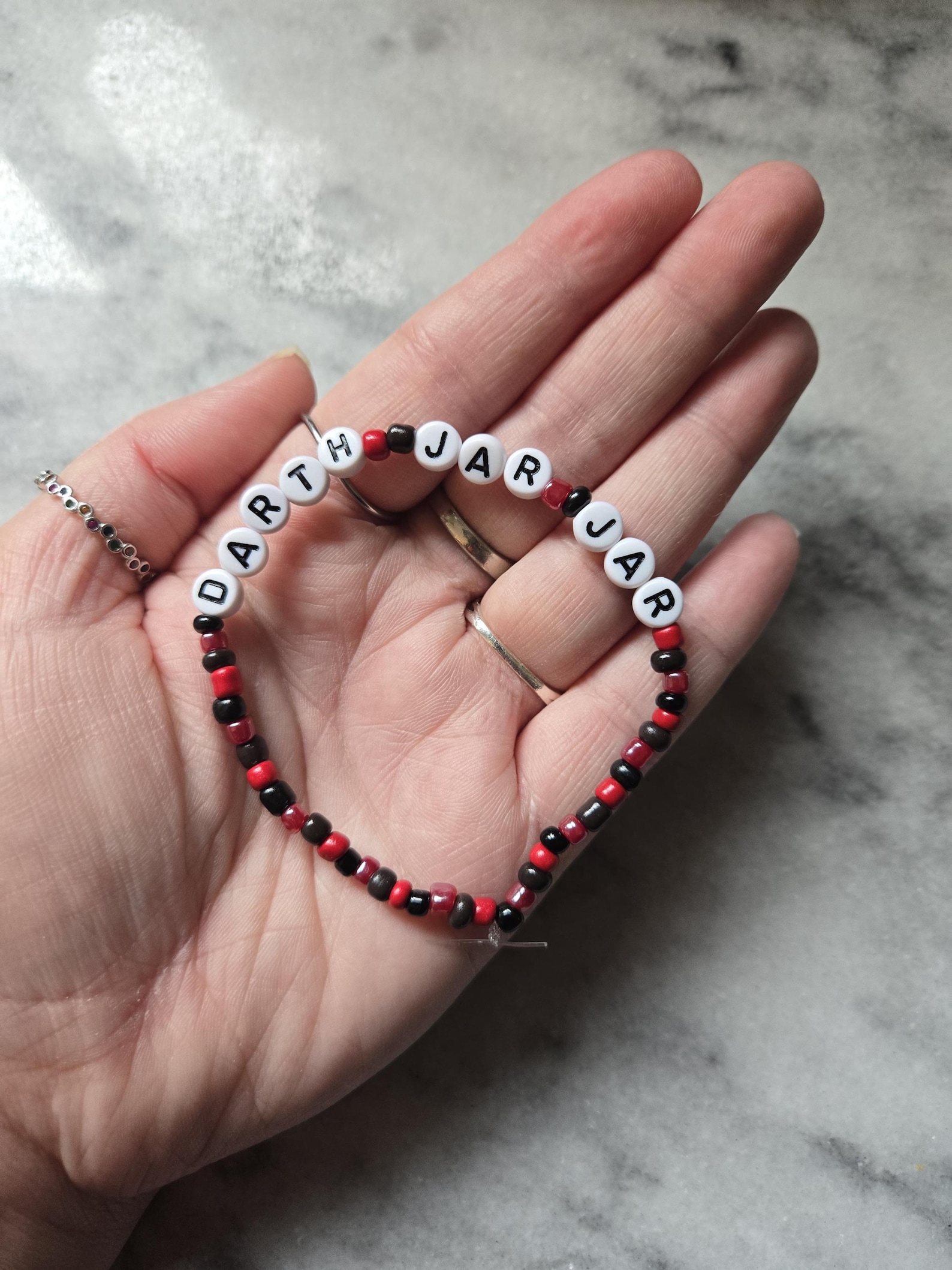 Independent creators have also brought the concept into physical form. A custom red-and-black “Darth Jar Jar” bracelet was produced by an Etsy artist in collaboration with DarthJarJar.com, reflecting how the name and character have extended beyond discussion and into tangible fan creations.